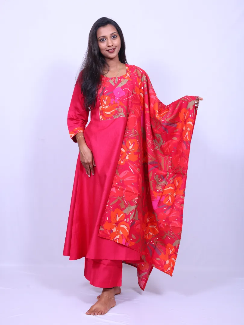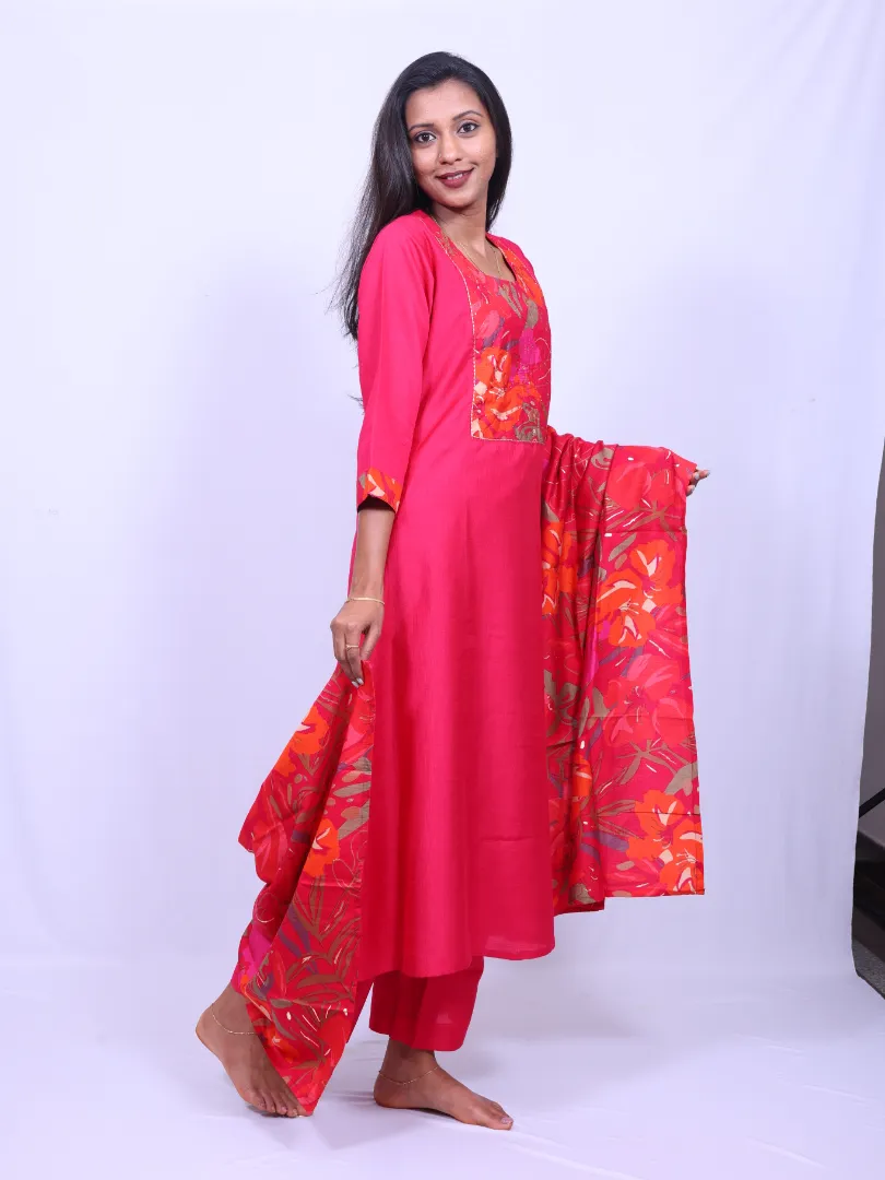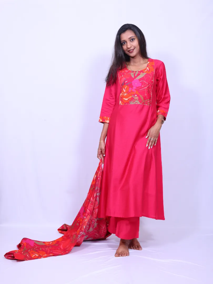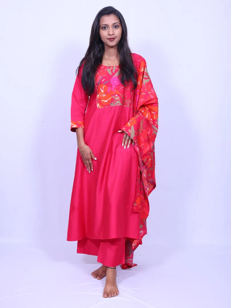 veticom plain & printedfabric, round neck printed dupatta, palazzo pant