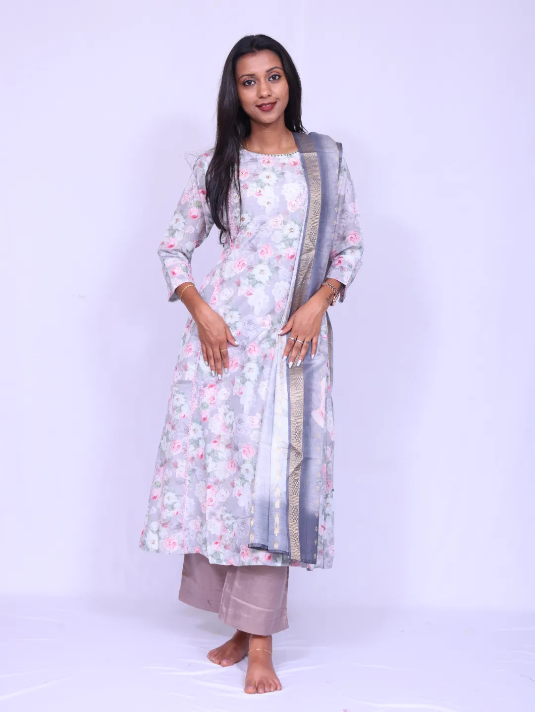 Graceful Liberty Muslin Printed Palazzo Set with Chanderi Dupatta